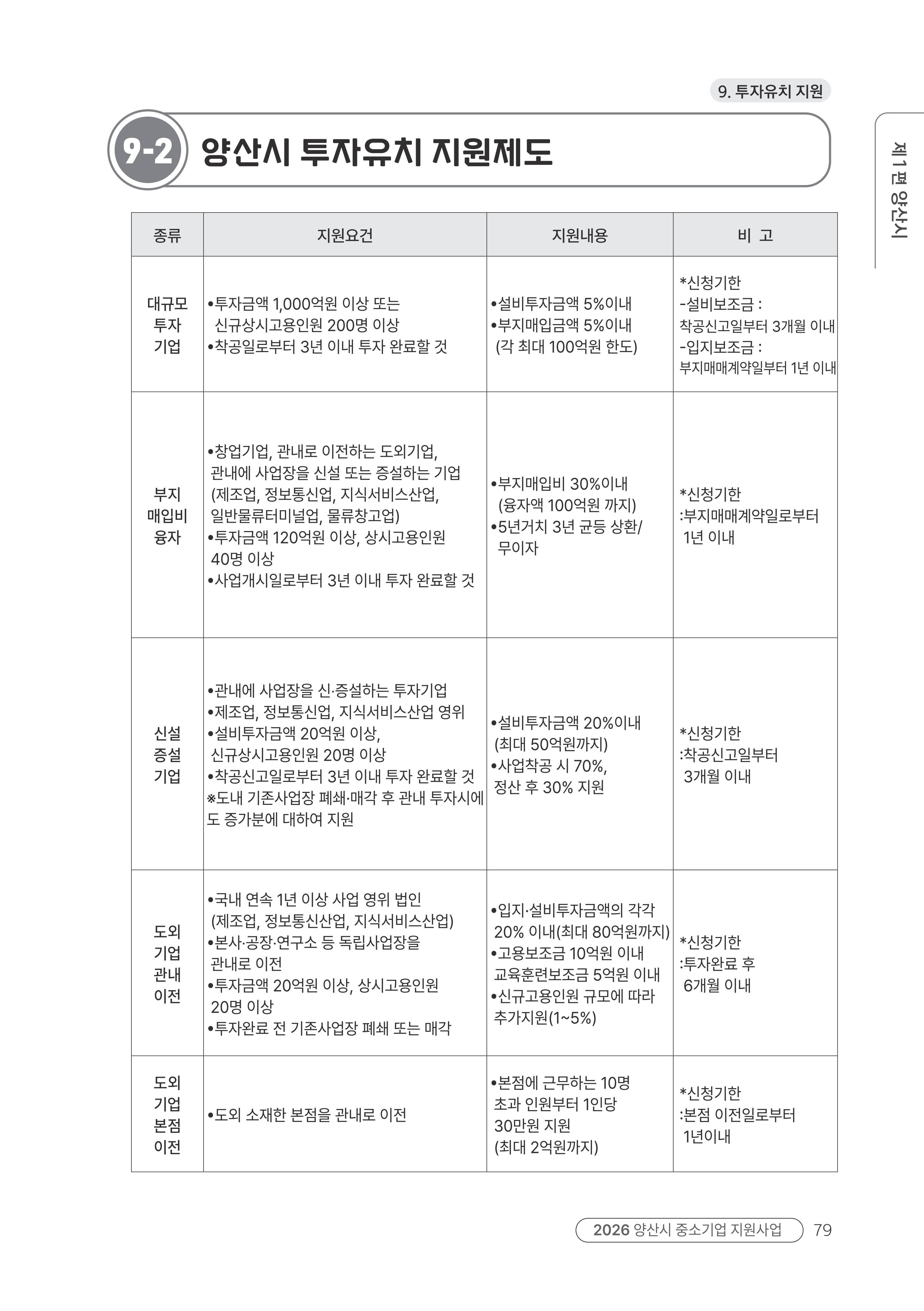 주요투자인센티브 지원제도