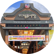 남부시장은 1980년도에 개설된 상설시장으로 구 시외터미널 뒤편에 위치하고 있습니다. 부산, 울산, 김해, 밀양 등과의 교통이 편리하며 주요 취급품목은 지역에서 생산된 신선한 농산물과 부산, 울산 등에서 직송하여 온 생선, 미역, 조개류 등 수산물 및 의류, 공산품 등이 거래되고 있습니다. 특히 어물전에는 싱싱한 생선 및 민물고기가 다양하게 거래되고 있어 제수용 생선 및 부식 구입을 위해 시민들이 많이 찾고 있는 시장입니다.