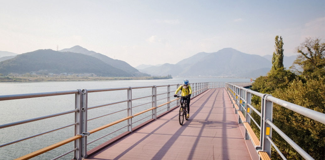 사계절 언제든 운치가 있는 코스지만, 많은 사람들은 봄에 이곳을 찾는다. 매년 봄에 매화축제가 열려 하얗게 핀 매화와 달리는 기차의 모습을 함께 담을 수 있기 때문이다. 새하얀 매화는 두 바퀴 굴리며 떠나는 자전거 여행자에게 힘찬 환호와 함께 위로를 전한다.