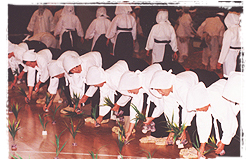 영각을 불면서 농기, 영기, 청, 황, 적, 백색기 선창자와 악기를 치면서 입장한다. 풍물꾼과 동네 아낙네들이 광주리에 음식과 술을 담은 독을 이고 춤을 추고 뒤따르면서 노래를 부른다. 좌상(행수)이 풍물과 노래를 멈추게 하고 한 해 농사의 품평회를 갖자고 제의하면 일동은 들녘 논을 돌며 노래와 춤을 추면서 품평회를 갖는다. 품평회가 끝나면 장원을 한 주인은 머슴을 오색으로 치장한 황소에 태우고 놀이터로 돌아와서 차려놓은 음식상 앞에 장원댁 주인과 머슴은 천지신명에게 고유제를 올린 다음 마을 사람들이 어울려 쾌지나 칭칭 노래를 부르면서 한바탕 논다.