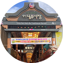 남부시장은 1980년도에 개설된 상설시장으로 구 시외터미널 뒤편에 위치하고 있습니다. 부산, 울산, 김해, 밀양 등과의 교통이 편리하며, 지역에서 생산된 신선한 농산물과 부산, 울산 등에서 직송하여 온 생선, 미역, 조개류 등 수산물 및 의류, 공산품 등이 거래되고 있습니다. 특히 어물전에는 싱싱한 생선 및 민물고기가 다양하게 거래되고 있어 제수용 생선 및 부식 구입을 위해 시민들이 많이 찾고 있는 시장입니다.